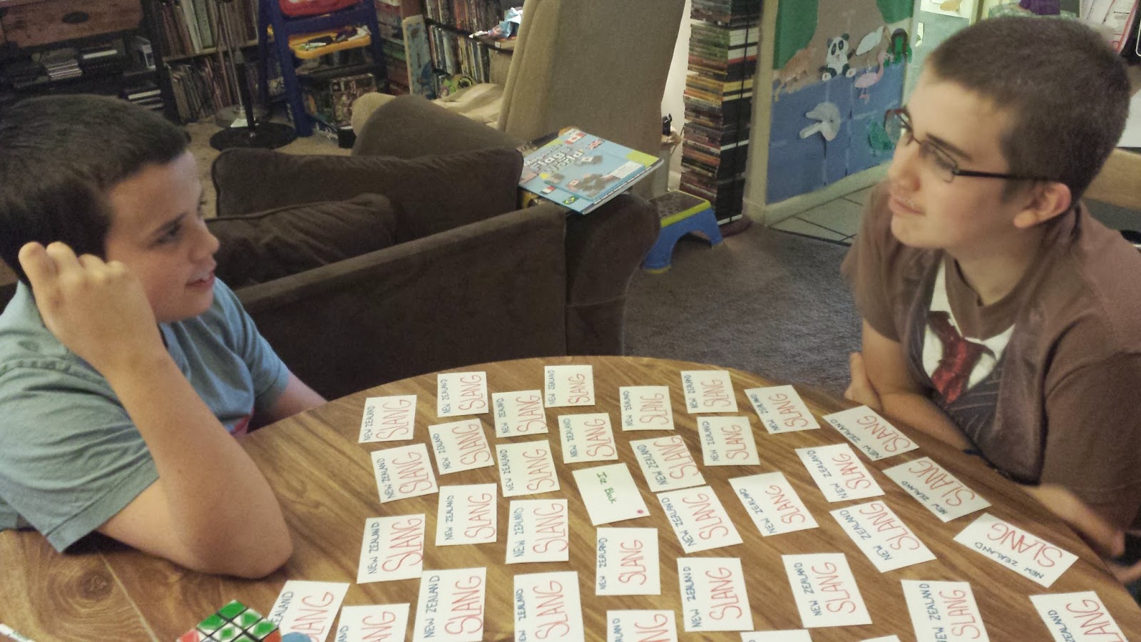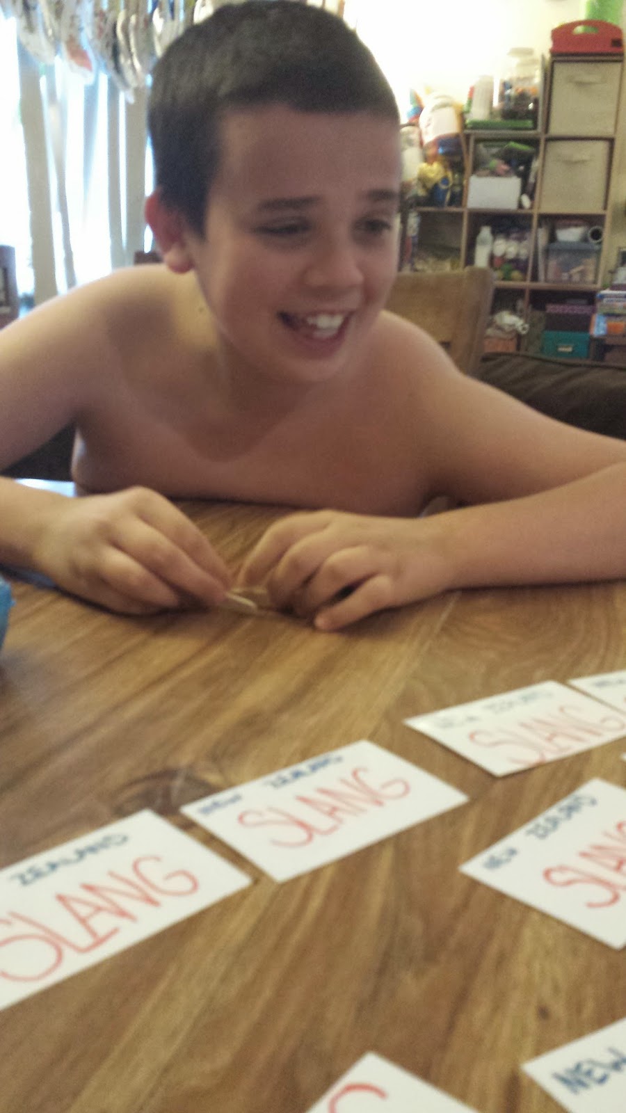 As part of our New Zealand studies the boys are working on the language. Where they also speak english in New Zealand some of the words are a little different than ours. To make it fun for the boys I made them a memory game with the new zealand version of our words.