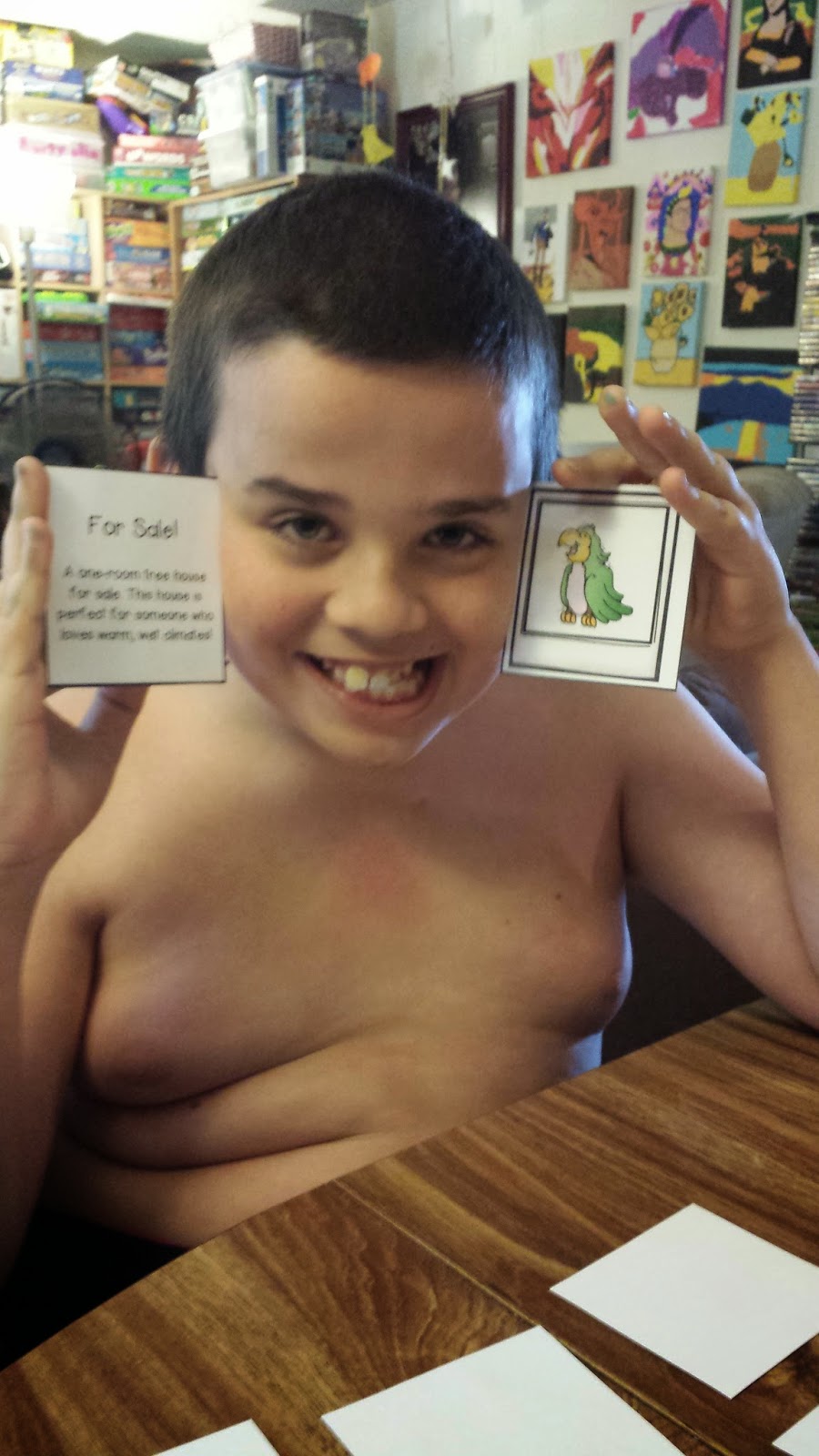 It started out kind of slow. Each boy worked on learning about animal habitats. Sam was assigned to design habitats for three different animals. He needed to make sure that it had everything that the animal would need to survive. For Gabe I found an adorable set on Teachers pay Teachers called Habitat for Sale. It had some really great worksheets plus an adorable memory game.