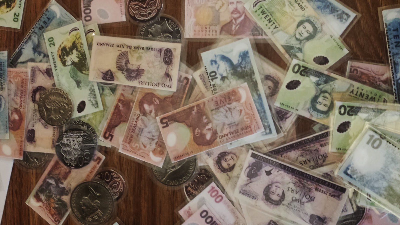 I started out by having them learn about the money. I made them some play money so that they could see what it all looked like. I just found some images on google printed them out and laminated them. When the lesson was done we put the money in our continent bins.